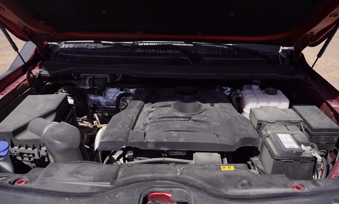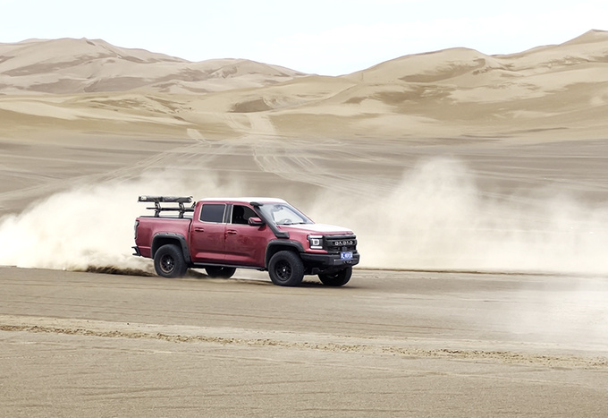 很多人在长途越野穿越时会选择汽油皮卡,笔者本次穿越过程中需要经历较多的软沙地路面,发动机在大多数情况下处于高转速区间提供更强爆发力。针对大道敢探者的这款2.3T FEU汽油发动机来说,它的做工特点为短行程高转速,能够长时间处于高转速域下行驶,帮助笔者从容穿越松散沙地。针对发动机散热系统,则是拥有以下三大技术优势。
