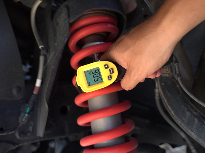 正是依托于以上这些技术优势,大道敢探者的减震系统时刻保持高效工作,当我们在高温状态下,连续通过搓板路路况后,减震筒的温度约为50.6℃,彰显出优秀的散热能力。也就是说大道敢探者在高温环境下挑战复杂非铺装路况,减震系统也没有出现任何产品质量问题。