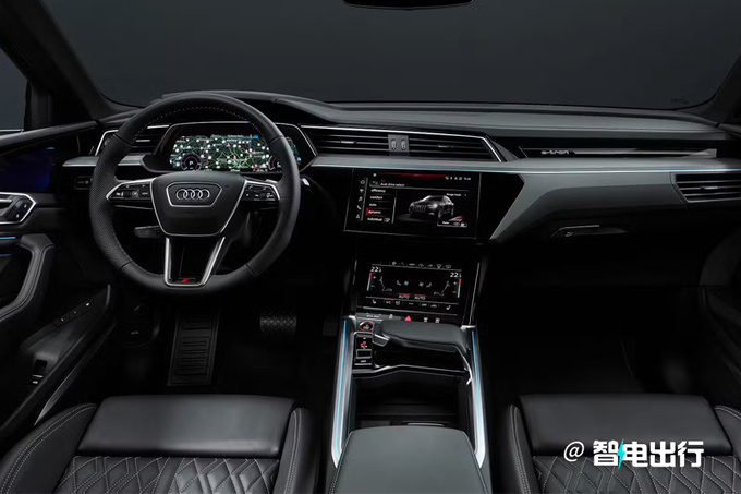 据悉,奥迪Q8 e-tron和Q8 Sportback e-tron两款车型,装配的S Line Competition运动套件整体造型与SQ8 e-tron车型较为相似,并同步加入了宽体包围、熏黑处理的21寸轮毂以及后部带有S标识的黑色高性能刹车卡钳等。同时新车还将配备自适应空气运动悬架和一些碳纤维部件,包括后视镜盖、前脸格栅和车门饰板等。