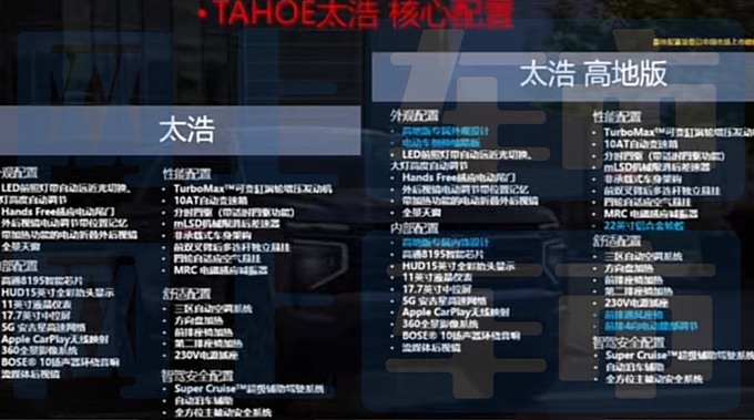 曝光的配置信息显示,太浩2款车型用的都是2.7T四缸发动机,反观美国市场是5.3 V8起步。这样也就不难理解,为什么在有关太浩的帖子下,不少潜在用户频频发问“北美卖40万,国内凭啥卖65万?”了。