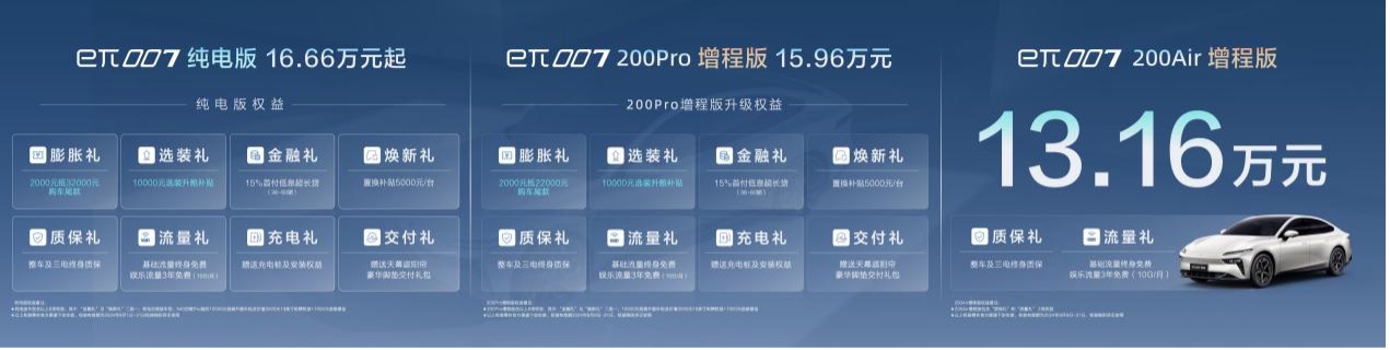 价值提升至多维度,诚意同样达到新高度。eπ007 200Pro增程版指导价已低至15.96万元,东风奕派在此基础上继续加码,推出了价值合计5.08万元的上市权益,包括2000元抵22000元购车尾款的限时现金减免、10000元选装升舱补贴,以及价值5000元的焕新礼或15%首付低息超长贷的金融礼、整车及三电终身质保的质保礼、赠送充电桩及安装权益的充电礼等丰富礼遇,进一步降低用户的购车门槛。