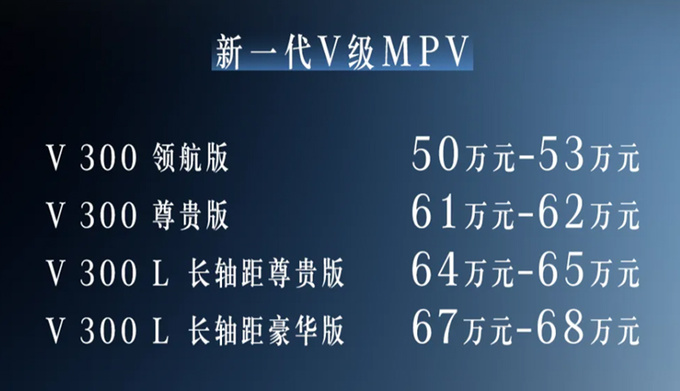梅赛德斯-奔驰官方宣布:新V级4款车型预售价50-68万元,相比现款车型涨价2.12-5.12万元不等。新车提供2种外观套件,包括立标豪华和大标动感版本,换搭动力更强的2.0T发动机,引入48V轻混系统。