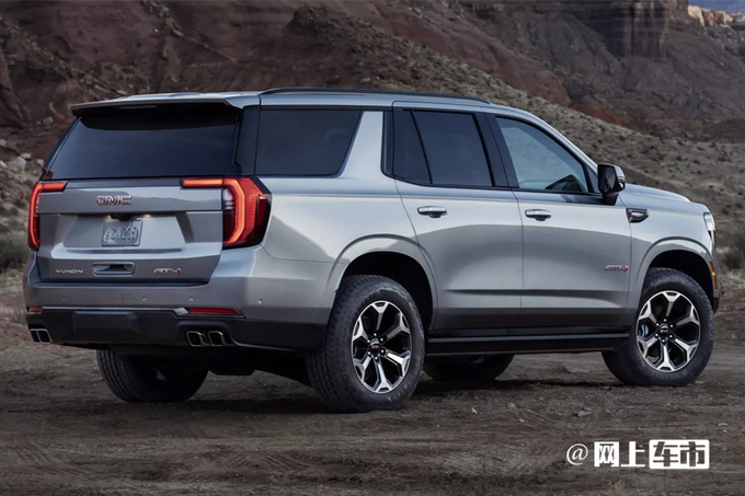 据悉,GMC新款YUKON车型头部提供了全新造型格栅以及LED头灯组,车尾部分选用了双边双出式排气布局,并提供24寸多辐式铝合金轮毂。同时新车也将同步推出AT4 Ultimate车型供消费者选购,并可使其为越野版车型,且提供20寸全地形轮胎、红色徽章以及金属防擦护板等多项配置,相比路虎揽胜等车型也更具硬派气息。