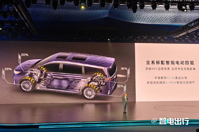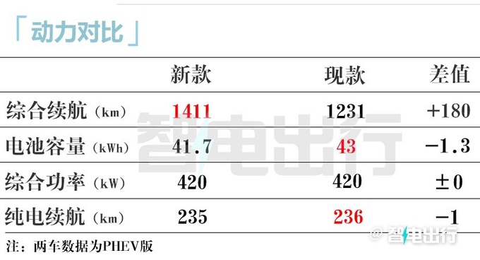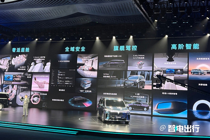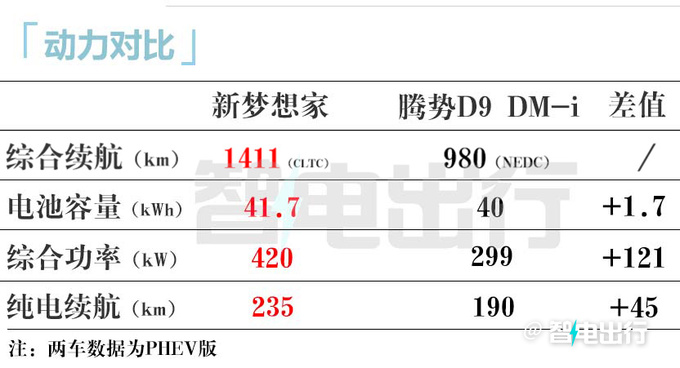 新梦想家提供PHEV和EV两种动力可选,PHEV版发动机最大功率110kW,综合功率420kW,匹配41.7kWh电池,纯电续航235km,综合续航1411km;EV版采用双电机四驱,账面参数与现款一致,综合功率320kW,CLTC续航里程650km。该车采用前双叉臂+后五连杆的悬架,标配智能四驱系统和空气悬架(带魔毯功能)+CDC。