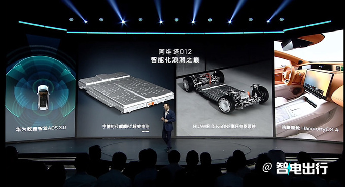 阿维塔012搭载华为乾崑智驾ADS 3.0、宁德时代麒麟5C超充电池、HUAWEI DriveONE高压电驱系统、鸿蒙座舱HarmonyOS 4。电池采用定制双能量井下沉设计,换热面积增加400%,低温加热速率提升150%,峰值充电电流超过700A,峥值充电功率超过480kW,10分钟充电到80%SOC(电池电量)。