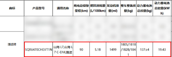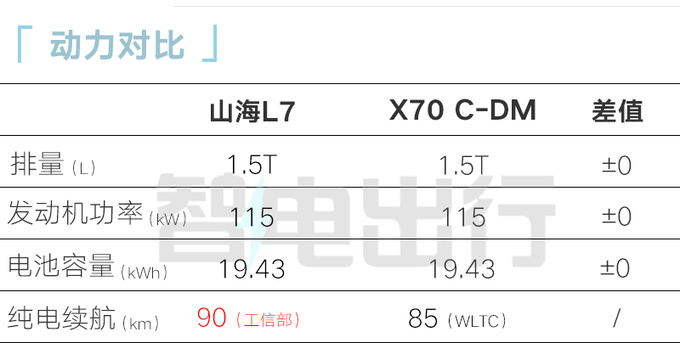 山海L7发动机最大功率115kW,峰值扭矩220N·m,匹配19.43kWh三元锂电池组,纯电续航里程90km,百公里油耗5.18L。参考山海L9,预计新车也将搭载前置双电机驱动,匹配2档DHT变速箱。