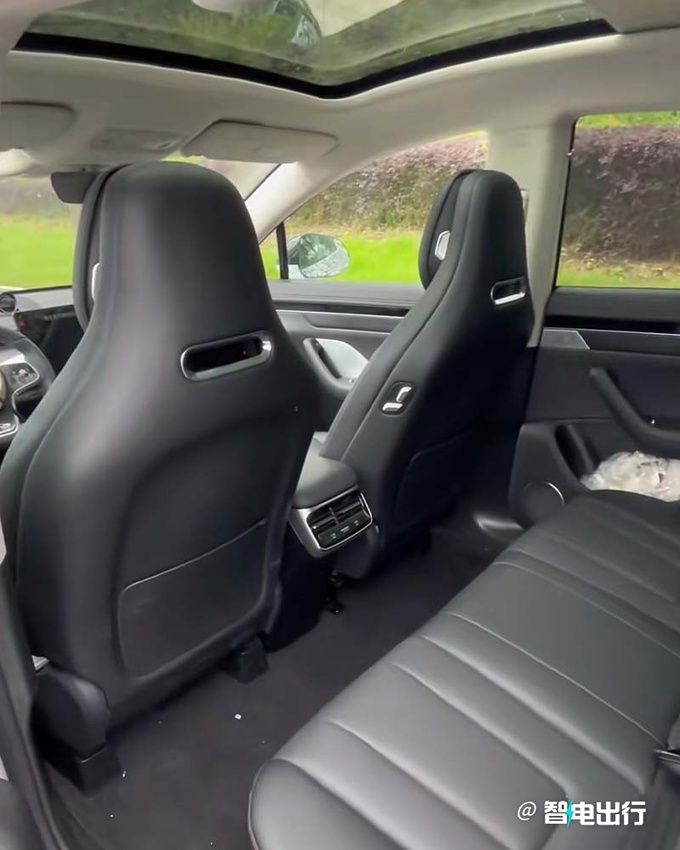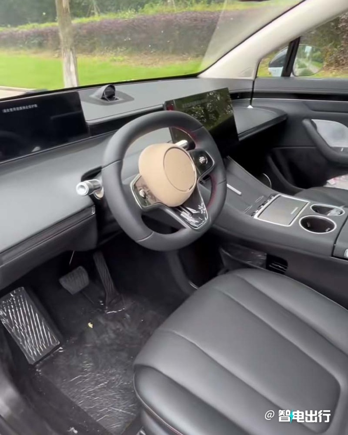 智界R7内饰造型与智界S7基本一致,配备三幅式方向盘、前眺领航屏、悬浮式中控屏、一体式运动座椅、无线充电板、隐藏式冷暖箱和纯平仪表台,可秒变办公台;还增加开放式水杯槽、电动遮阳帘和尺寸更大的中央扶手箱。