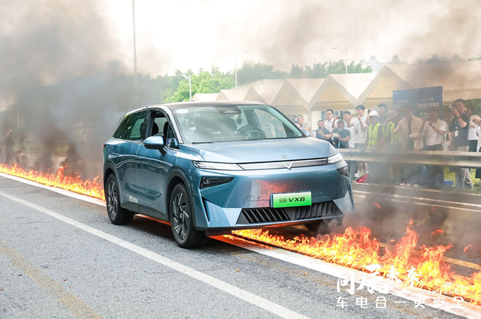 火路测试则是重点考察在超高温的外界环境中,电池能否扛得住。启辰VX6以不超过10km/h的速度,缓行通过接近1000℃的火路,高温并没有对车辆造成什么影响,电池的防护手段还是很到位的。