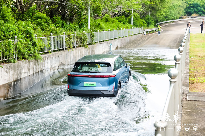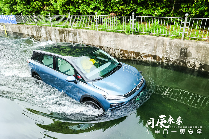 前段时间全国各地暴雨连连,多地出现道路淹水的情况,那在这种极端情况下,电动车到底能不能通行?启辰VX6的防水等级为IP67,处于行业主流水平,以10km/h速度缓行通过深度70cm的水路,这个涉水量基本达到了硬派SUV的标准了,而启辰VX6能够安全通过。