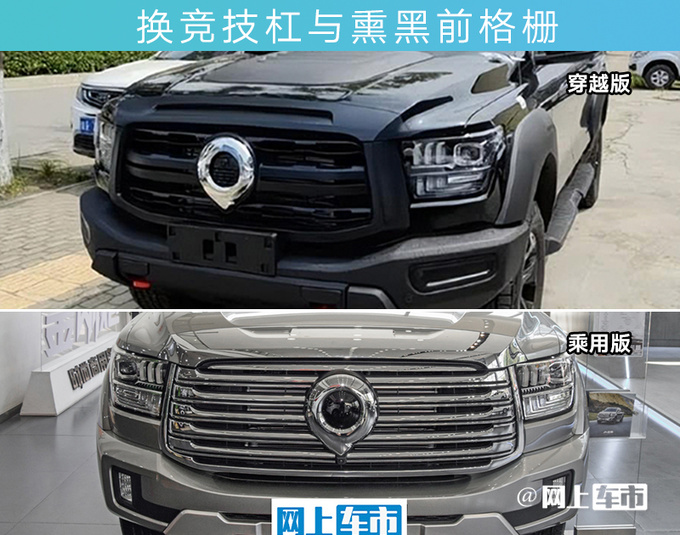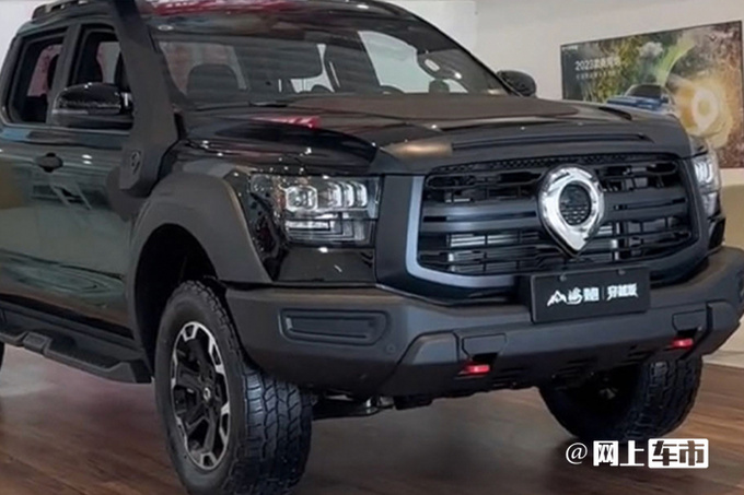 山海炮穿越版前格栅进行熏黑,前舱盖和货箱尾门增加黑色装饰件。新车配备前后竞技金属杠、涉水喉、18英寸越野轮胎,可选K-MAN氮减。车内继续采用12.3英寸液晶仪表与14.6英寸中控屏。