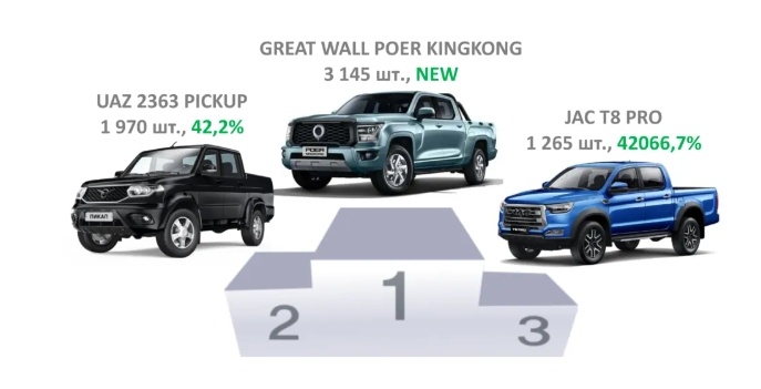 近日,俄罗斯媒体公布当地皮卡市场2024上半年销量,半年共计售出12386台,同比增长59.4%,6月单月售出2220台皮卡,同比增长达到80%,展现出该地区充沛的市场活力。其中国产皮卡品牌表现出色,销量前十名中独占五席,不过需要注意的是,该销量仅统计C端用户皮卡销量,不含政府采购等。