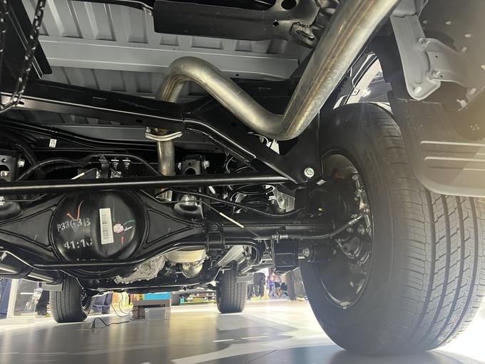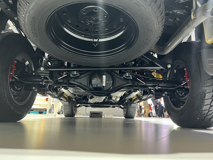 当然,越野大件也必不可少,整车还配有电子差速器锁,配合4L模式下可迸发出的1017NM最高扭矩,在面对坑洼以及雨雪湿滑路面,强劲的低扭矩可以为轮胎带来高强度的附着力,大幅提升道路通过性和稳定性。