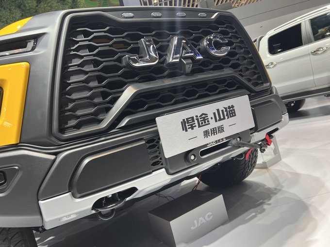 江淮悍途山猫乘用版整车装配了多项越野套件,在外观上延续了悍途乘用版的机甲中网造型,可提供充足的进气效率;配备前后越野竞技杠,不仅可以提升防护性能,增强外观的硬朗感,配合整车具有的23°离去角、30°接近角、26°纵向通过角以及230mm最小离地间隙,可以协助车辆开上更有难度的山坡。
