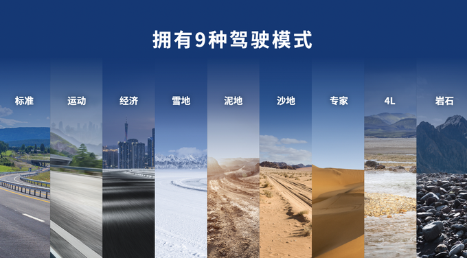 山海炮穿越版不仅动力强劲,更拥有百万级的硬核越野装备。新车标配三把机械硬锁,拥有博格华纳4A+MLock超级智能四驱,分动器扭矩容量高达1900N·m,电磁控制,响应更快,机械锁止更可靠,脱困救援游刃有余;标配经济、运动、泥地、沙地、岩石、专家等9种驾驶模式,以及坦克转弯、蠕行模式、360环视、透明底盘、越野信息显示等智能越野配置,轻松拿捏全场景路况,助力用户体验到他人无法企及的风景。