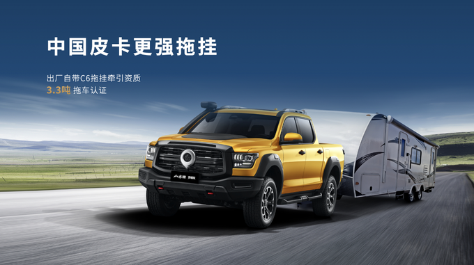 山海炮穿越版以超好玩的百变拓展空间,解锁全家出行更多乐趣。山海炮穿越版出厂自带C6拖挂牵引资质,满足3.3吨拖车认证,可拖挂中大型房车,是拖挂能力最强的国产皮卡;预留24矩阵式锚点和220V外接电源,还可选装国内首创6:4对开尾门设计,百变货箱百变生活,玩转全场景皮卡车生活。