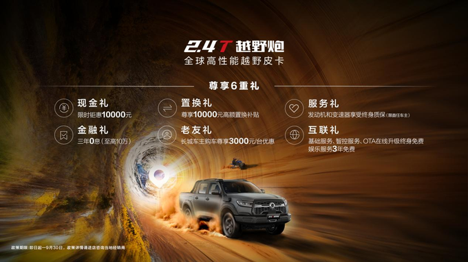 8月30日,中国越野皮卡扛鼎之作2.4T越野炮于成都车展正式上市,2.4T越野炮进阶版官方建议零售价17.88万元、高阶版官方建议零售价18.88万元。长城炮为购车用户推出现金礼、置换礼、服务礼、金融礼、老友礼、互联礼六重大礼,价值拉满,诚意十足。