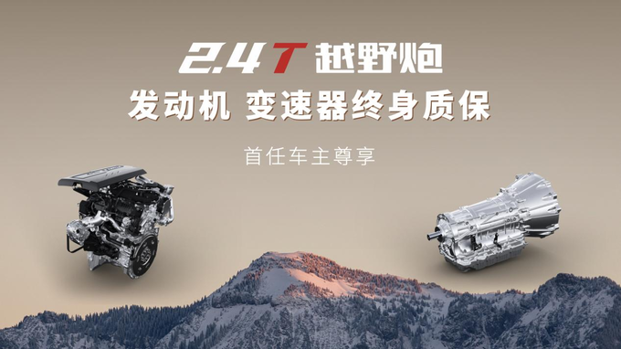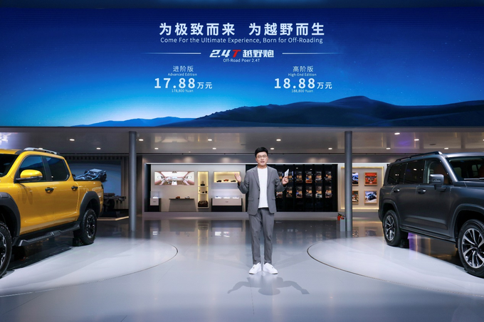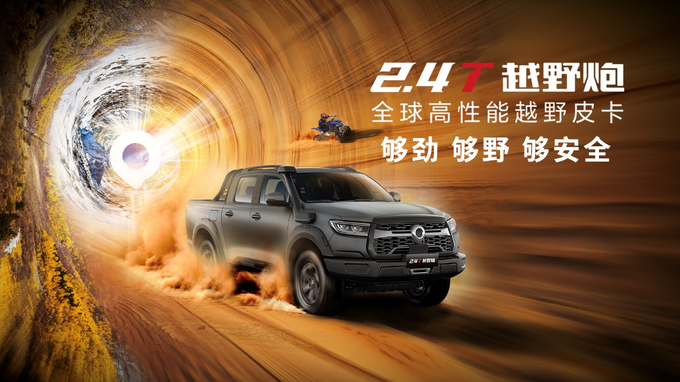2.4T越野炮定位“全球高性能越野皮卡”,以新时代越野用车高标准打造,性能全面跃升,凭借够劲、够野、够安全三大硬核实力,为广大用户带来极致用车体验。