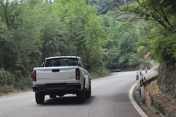 实际体验来看也的确如此,挂入一挡后抬离合同时轻点油门便可实现顺畅起步,重踩油门即可感受到澎湃的动力储备和皮卡中不多见的“推背感”。并且笔者还特意测试了一下大道山地版的半坡起步能力,空载情况下完全不需要拉手刹,达到离合结合点后上陡坡亦可做到起步无忧。