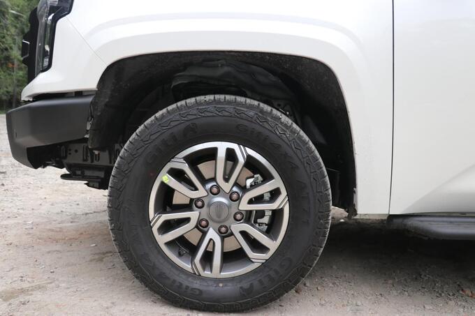 大道山地版原厂配备了一线品牌佳通265宽度的越野AT胎,更宽的轮胎增大了与地面的摩擦力,大花纹的设计使其在非铺装路面具备更强的抓地效果,体验过程中即使是通过雨后泥泞路段也未出现打滑情况;4、满载最小离地间隙216mm:更高的离地间隙也给了大道山地版挑战高难度路况的底气和信心,能够更加从容的穿越崎岖山涧。
