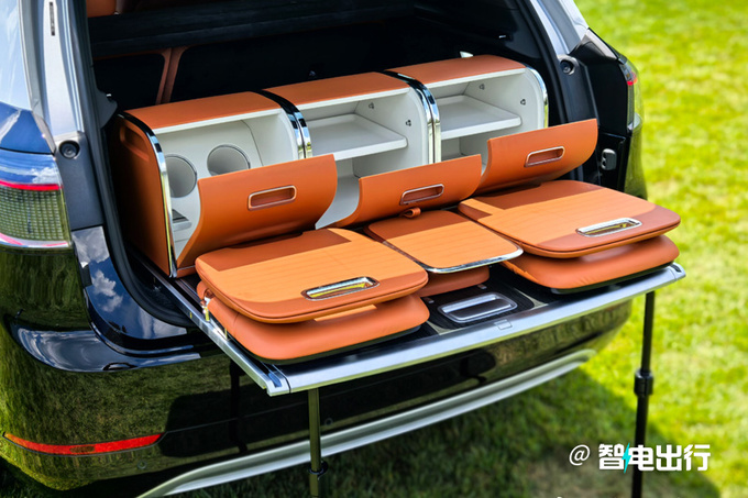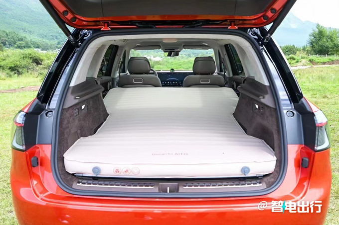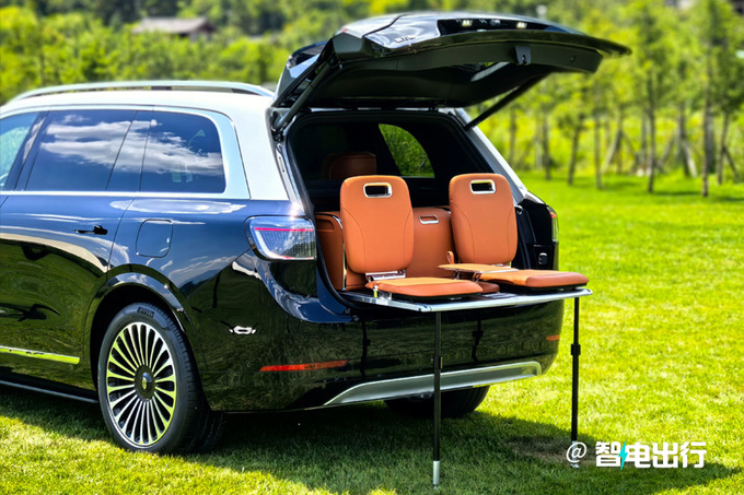问界M9五座版新增的“山海坐席”放置在后备厢内部,当需要时可以取出(支持电动开启)。座椅面朝尾门开启方向,乘员可以坐在椅子上欣赏美景、小憩和钓鱼等。