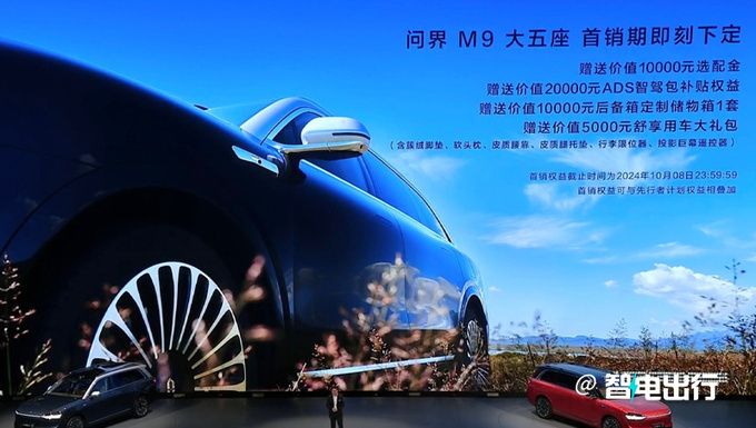 首销期(截止时间为2024年10月08日23:59:59)下定用户赠送价值10000元选配金、价值20000元ADS智驾包补贴权益、价值10000元后备箱定制储物箱和价值5000元舒享用车大礼包(含脚垫、头枕、腰靠、腿托垫、行李限位器等)。