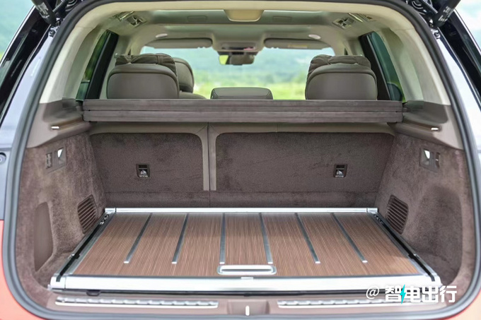 由于取消了第三排座椅,新车后备厢利用率提升,常规状态最长纵深1167mm,储物容积638L,二排座椅放倒后,后备箱纵深可扩展至2107mm,最大容积1105L。