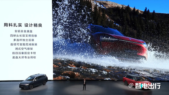 问界M9搭载了华为途灵智能底盘,全系标配空气悬架和CDC可变阻尼减振器,车身高度具备5档可调。增程版1.5T增程器最大功率112kW,驱动电机综合功率365kW,搭载52kWh三元锂电池组,零百加速4.9s。纯电版驱动电机综合功率390kW,匹配100kWh三元锂电池组,CLTC续航里程630km,零百加速4.3s。