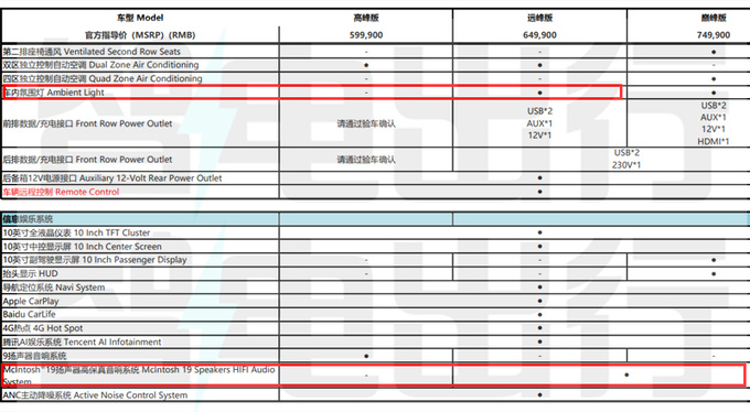 便宜这么多是有代价的。曝光的高峰版配置表显示,新车比远峰版少了11项配置!