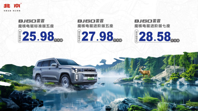 BJ60雷霆版共推三款车型配置,分别是魔核电驱标准版5座、进阶版5座和进阶版7座,官方指导价为25.98万元-28.58万元。