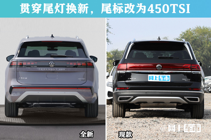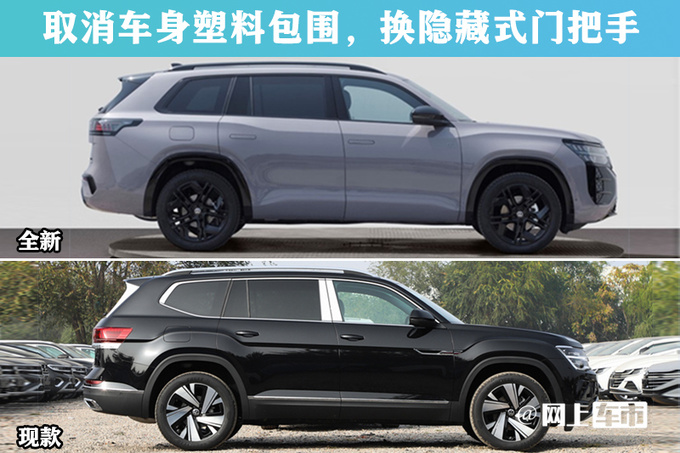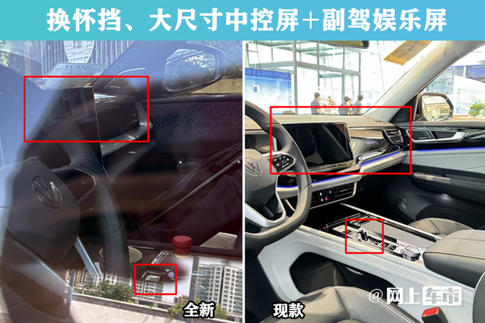 途昂Pro中控台采用大面积Alcantara+双缝线包覆,门板氛围灯面积更大,门拉手或改为上拉式设计;参考途观L Pro,新车或将配备10.3英寸液晶仪表、15英寸中控屏、11.6英寸副驾驶娱乐屏,还提供哈曼卡顿音响、与大疆联合开发的智能辅助驾驶。