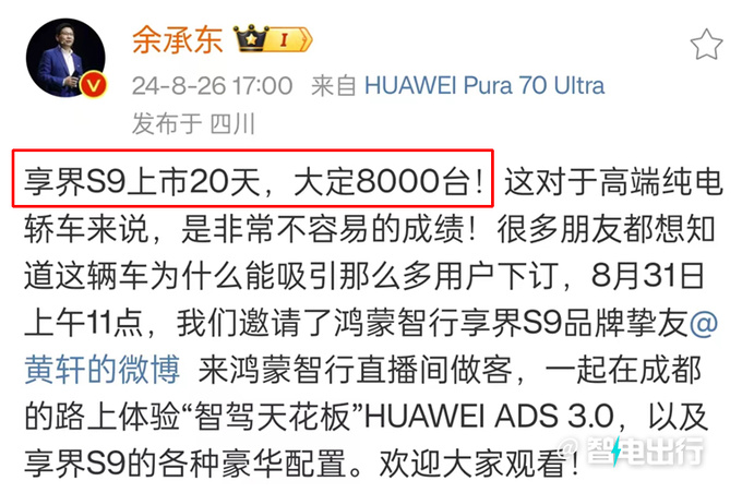 赛力斯、北汽、长安等车企,的确从与华为的合作中受益很多,比如8月初上市的北汽高端轿车享界S9,虽然起售价高达39.98万元,但上市20天就获得了8000台大定订单。