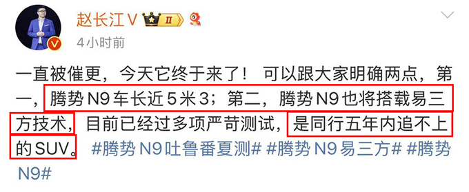 N9伪装贴纸上写了“500万以内就换我”的字样,腾势销售事业部总经理赵长江也表示:腾势N9已经经过多项严苛测试,是同行5年内追不上的SUV。