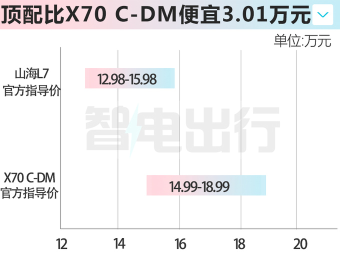 山海L7宽、高和轴距与X70 C-DM完全一致,可看作是它的改款,前脸与理想L7有几分相似,搭载奇瑞第五代1.5TGDI混动专用发动机+电机,10元通勤一周,百公里馈电油耗5.18L。