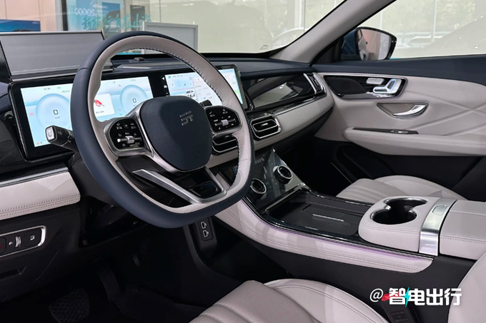 山海L7搭载双12.3英寸联屏(全液晶仪表+中控屏),标配双区自动空调、360°全景影像+180°透明底盘、皮座椅、外后视镜电动调节+加热、全景天窗、后驻车雷达、6.6kW移动电站、50W手机无线充电等。