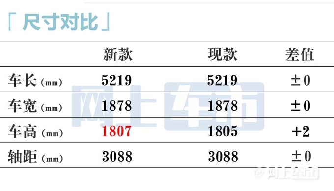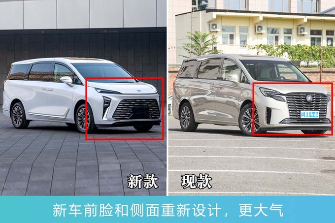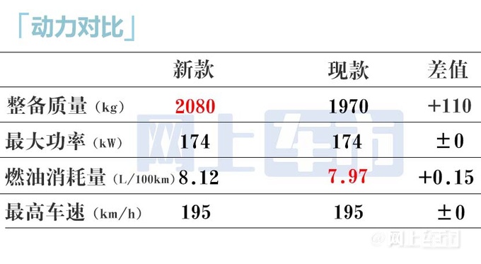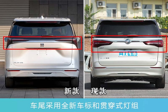 新GL8陆尊燃油版外观与GL8陆尊PHEV基本一致,配有贯穿式日行灯带,尾灯改用红色饰板装饰(PHEV为透明饰板),车高调整至1807mm,继续搭载2.0T发动机,最大功率174kW,WLTC燃料消耗量最低8.12L/100km,较现款有所增加。