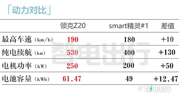 领克Z20和极氪X一样,都基于SEA浩瀚平台打造,国内版采用61.47kWh磷酸铁锂电池(欧洲销售的车型配备66kWh三元锂电池),电机最大功率250kW(欧洲车型为200kW),续航里程530km。