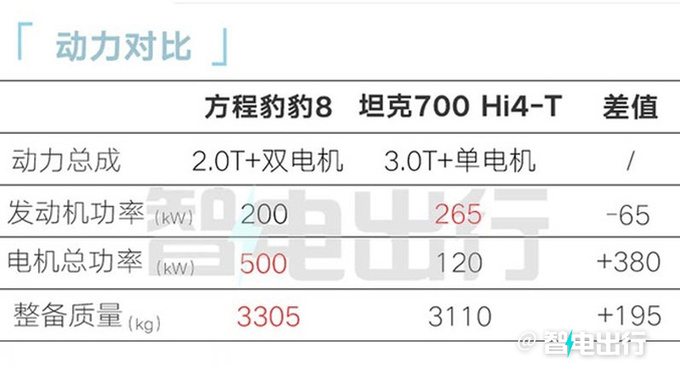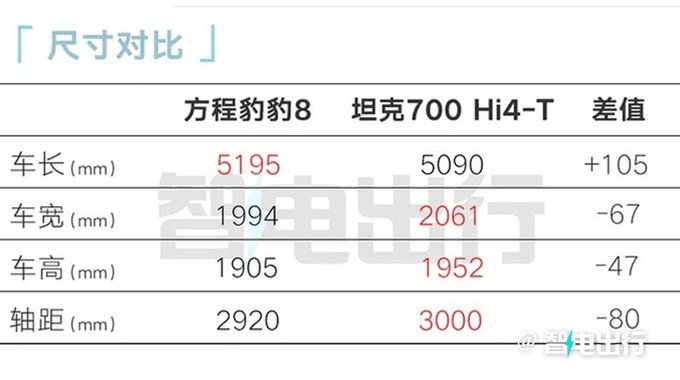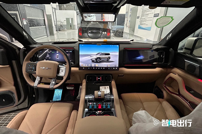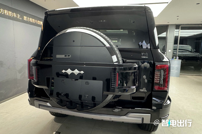豹8采用非承载式车身,搭载2.0T DMO电驱越野开创平台+全功能版云辇-P智能液压车身控制系统,支持140mm悬架调节行程(支持3级刚度调节),系统综合功率550kW,零百加速4.8s,匹配36.86kWh弗迪电池,综合续航里程1200km。