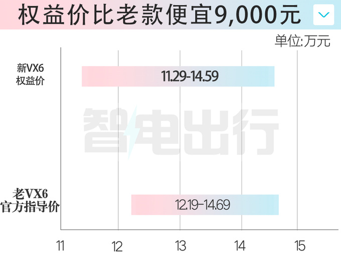 新VX6继续采用单电机驱动,2种动力版本最大功率分别为155kW、160kW,最大扭矩均为275N·m,分别对应53kWh、62kWh磷酸铁锂电池,CLTC工况下续航分别为450km、520km。