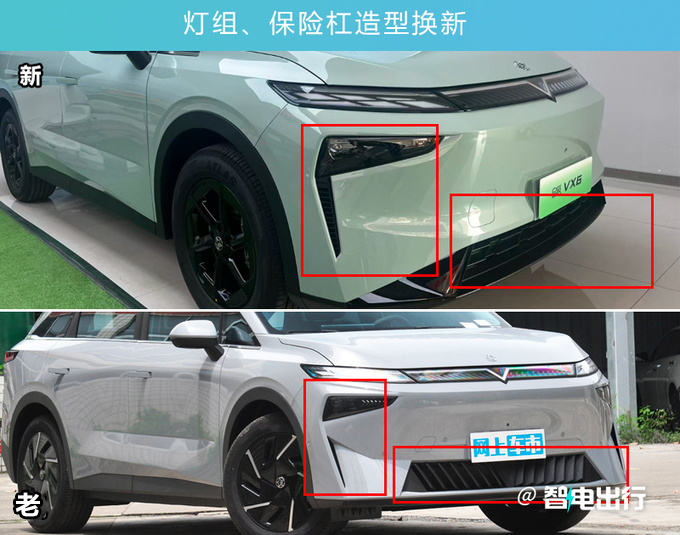 新VX6增“无忧绿”车色,设计团队说这种颜色就是奔着吸引女性消费者来的。同时取消真爱粉、非常白/黑双色,大灯组与两侧的导风口相融合,保险杠进气口改为一体式,换装了新造型轮毂。