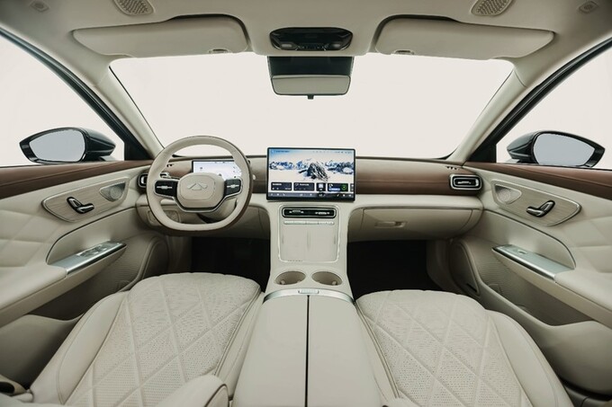 风云A9是同级别唯一四座车型,配备了四门+后风挡的全车隐私玻璃,保障了用户的隐私安全。车内配备有2个独立行政沙发座椅和超宽行政岛台,其中行政沙发座椅支持靠背25°-30°可调节、10点按摩、电动调节腿托等配置。此外,车内还配备有超大容量冰箱,支持-18°-50°的制冷,冰箱内部可容纳8瓶饮用水。