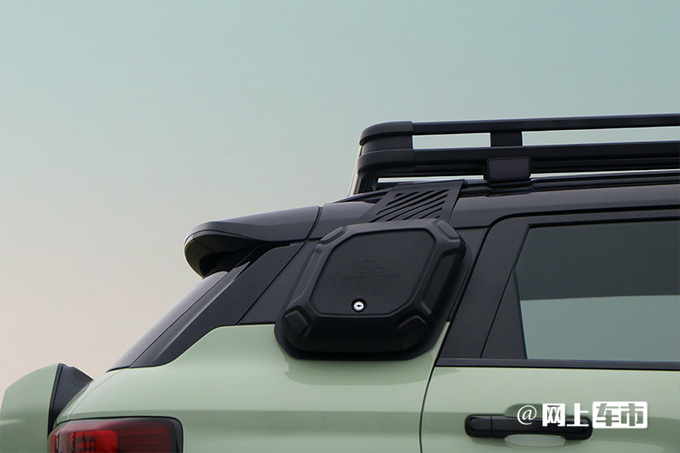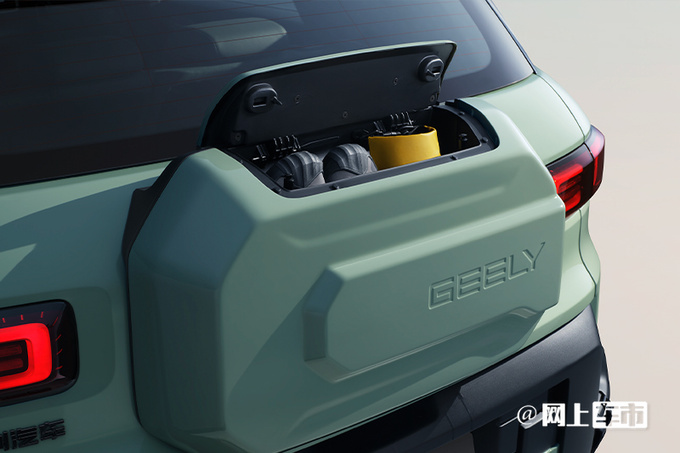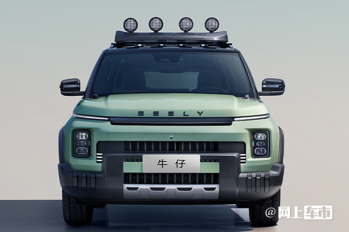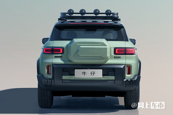 吉利牛仔提供雪原白、丛林绿、火山灰、大漠棕4款车身颜色,采用三体晶格前大灯与粗犷立体的大包围,前保下方增添银色装饰。门把手、外后视镜、车身标识等均采用黑化处理。新车还配备车顶越野装备架、尾门魔术背包、D柱多功能工具包。