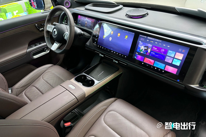 精灵#5提供8种车身色和6种内饰色,座舱配备10.3英寸液晶仪表、25.6英寸AR-HUD、零重力座椅、双13英寸大屏(带副驾屏)和隐藏式出风口,下方取消实体按键,科技感更强。车机搭载AMD V2000高算力芯片,内置smart OS 2.0系统,拥有近2倍于主流高通8295的数据处理能力,提供24GB大运行内存,更强大流畅。