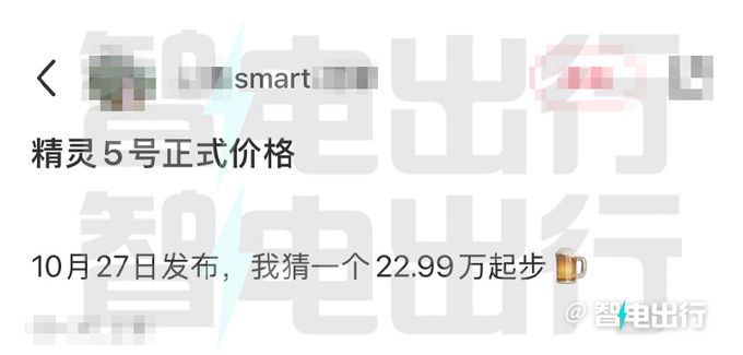 smart精灵#5将于10月27日晚上市,预售价24.5万起。门店销售预计,其正式价格可能是22.99万起。该车定位大5座中型SUV,是smart品牌史上最大尺寸的车型,甚至比奔驰GLC标轴还大!