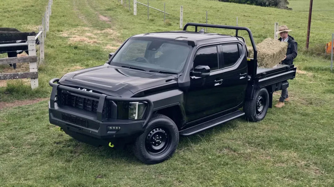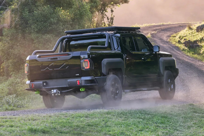 车尾部分,Tasman配备了一个标准尺寸的货箱、粗犷的尾灯、宽大的尾门和带集成踏板的保险杠。这款皮卡是标准的双排座,长度达到5410毫米,并可选择定制的单排和双排底盘车身。离地间隙因车型而异,范围在224至252毫米之间。涉水深度为800毫米。