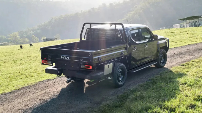 驾驶室内的实用功能还包括中控台上的折叠桌、后排座椅下方的33升储物箱和可倾斜的后排座椅。得益于Tasman的方正设计,起亚声称其头部空间、肩部空间和第二排腿部空间均为同类最佳。