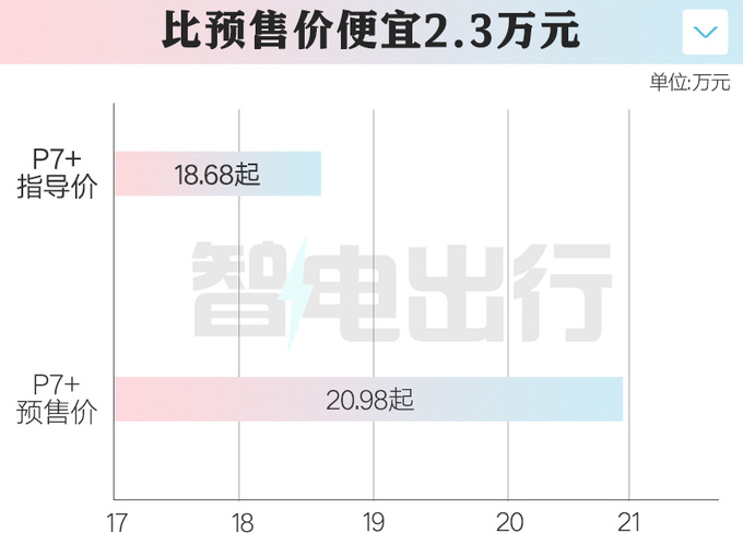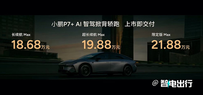 11月7日,小鹏P7+上市,官方售价分别为18.68万元、19.88万元,入门版比预售价便宜2.3万,比小米SU7入门版便宜2.91万;限定版Max售价21.88万元,首批发售500台。