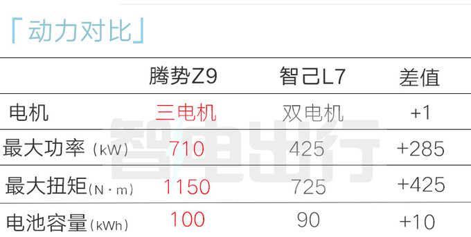 Z9插混版搭载由2.0T发动机+三电机组成的插混系统,发动机最大功率152kW,匹配38.5kW磷酸铁锂电池,纯电续航201km;纯电版最大功率710kW,最大扭矩1150N·m,搭载100kWh磷酸铁锂电池。