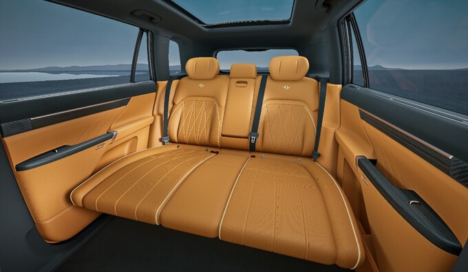 在舒适性方面,eπ008五座版依然追求座座都是VIP,整车3025mm的超长轴距,赋予了后排同级最大的腿部空间。不仅如此,新车创新打造“5米车长、3张床、2间房”的“532”标准,让后排拥有颠覆式的乘坐及使用体验。得益于同级唯一的二排电动魔毯座椅设计,eπ008五座版的后排腿托展开可形成1.5米的横向单人床,宽大的后排空间可供小朋友休息或玩耍;将副驾拆掉头枕后放平,则可与后排座椅形成同级最长、超2米的L型贵妃榻,成为绝佳的午休小憩场所;放倒后排座椅以后,更可一键成床,形成同级唯一的2.4米超大双人床,带来舒享如房车的体验。