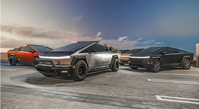 正式上市近一年的特斯拉Cybertruck本次也来参加了SEMA展,并且一口气展出了12台皮卡,每台都进行了不同的个性化改装,例如夸张的前保险杠、24寸车轮以及不同样式的射灯等等。这些改装件让Cybertruck看起来更像一台硬派越野皮卡,同时展会期间还出现了装备齐全的Cybertruck警用版本。
