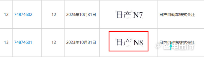 日产自动车株式会社除了注册了“N7”的商标,还有一款“N8”。而市面上主流的新能源SUV,像领克08、方程豹豹8、腾势N8都带“8”。不排除日产NEV家族叫N8的同样是款SUV。